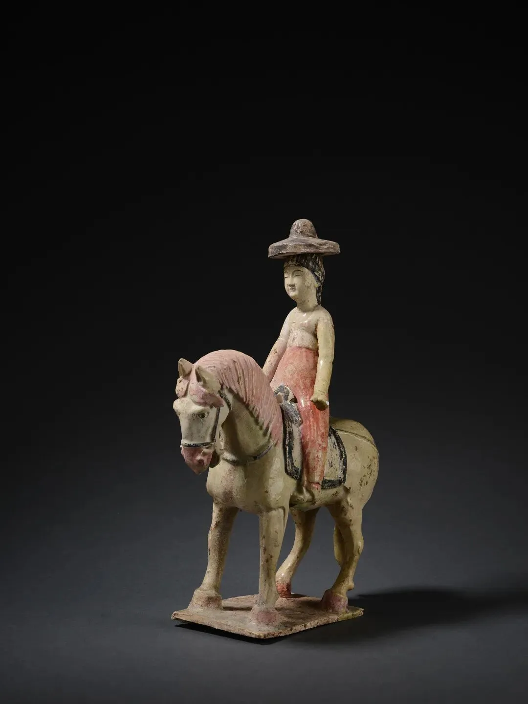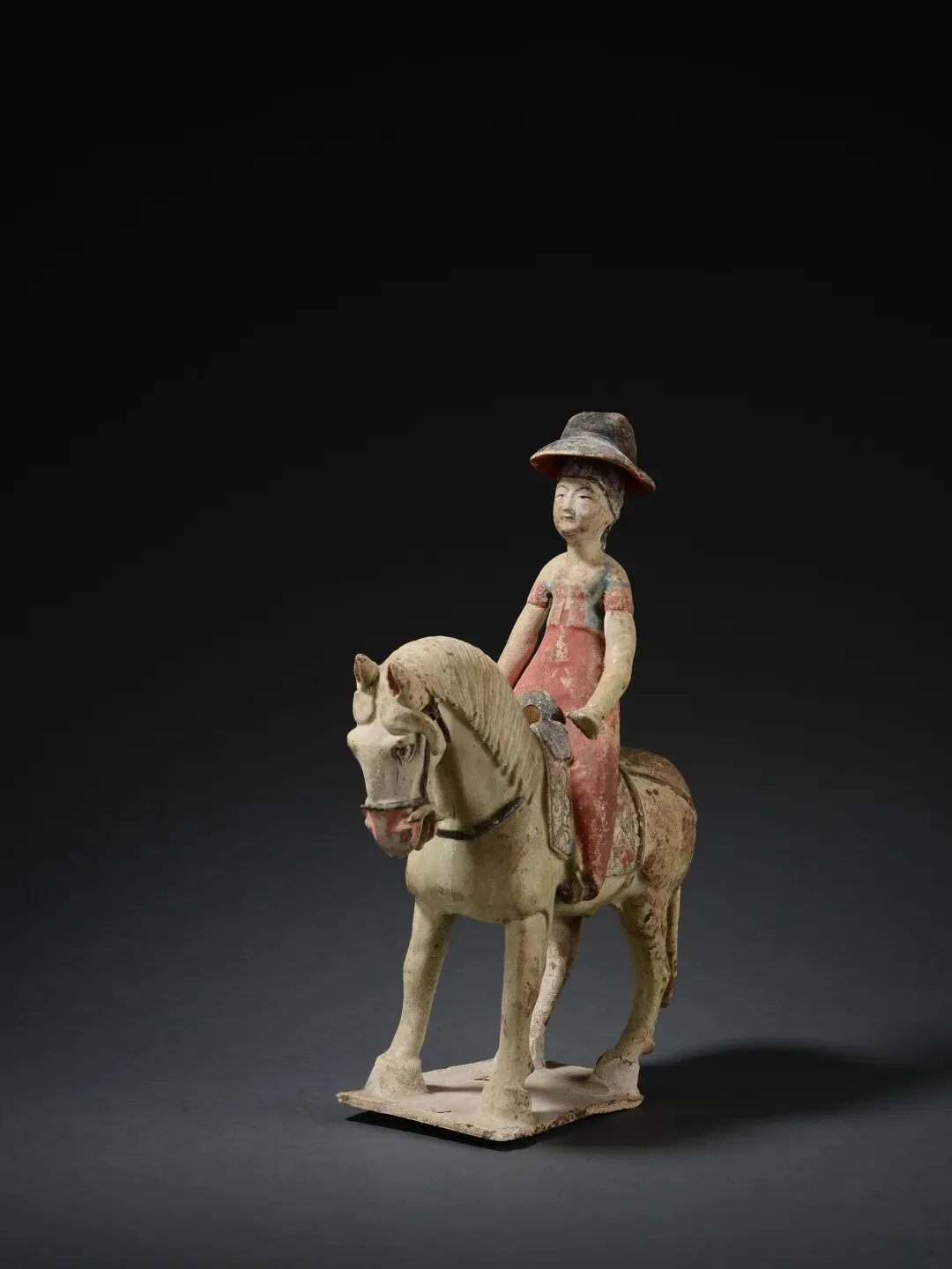彩绘翻沿胡帽骑马女俑(2件)