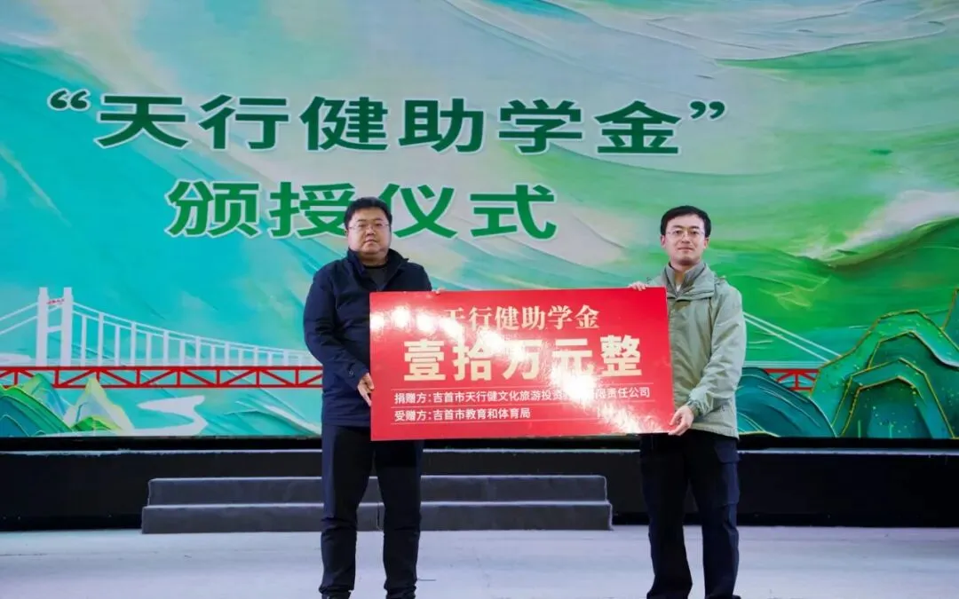 活动现场还举行了一场温馨的捐赠仪式。天行健公司董事长罗翼向吉首市教育和体育局颁授“天行健助学金”,旨在为更多青少年的研学成长之路提供支持和助力。