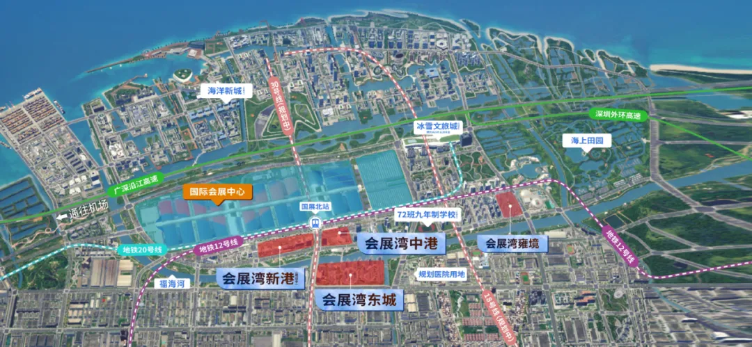 于粤港澳大湾区“黄金内湾”顶点,深圳市委市政府高规格规划约29.42平方公里会展新城。会展中心+冰雪文旅+海洋新城+深港先进制造四大产业引擎,打造深圳在粤港澳大湾区的战略制高点。