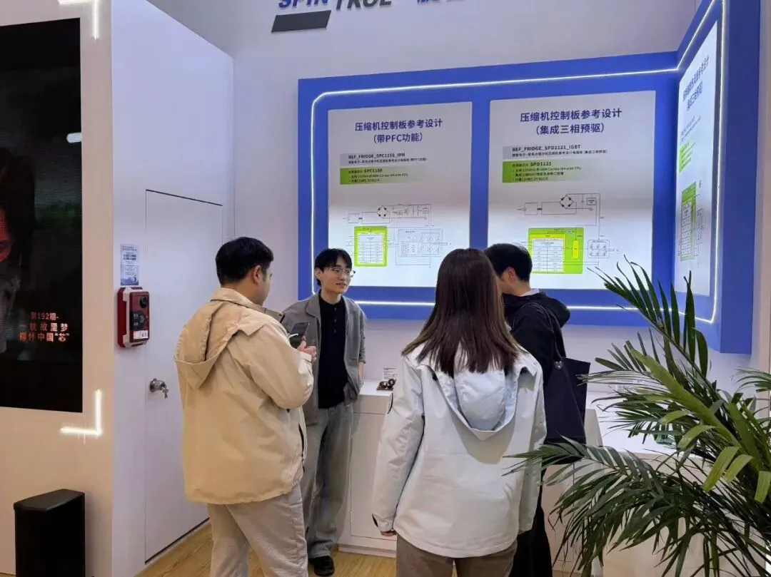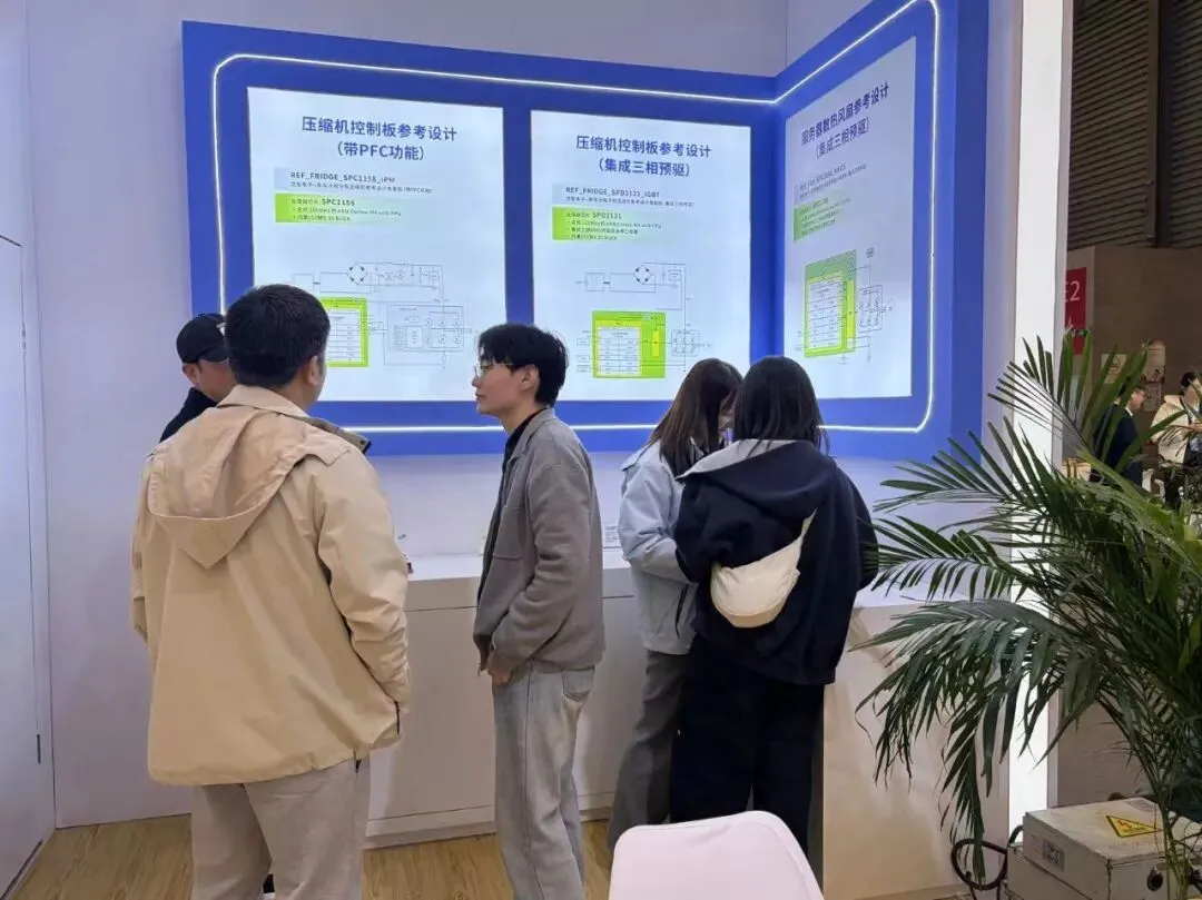 展出家用冰箱、商超冷柜压缩机参考设计(支持软件PFC或集成三相预驱方案),为家电厂商提供高效可靠的压缩机控制方案。