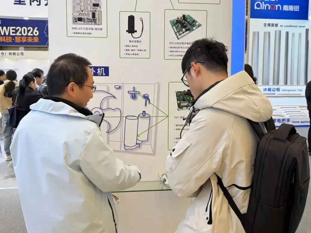 展出旋智家用分体空调电控设计方案,已成功实现头部客户量产导入,充分验证旋智在空调电控领域的成熟技术体系与产业化落地能力。