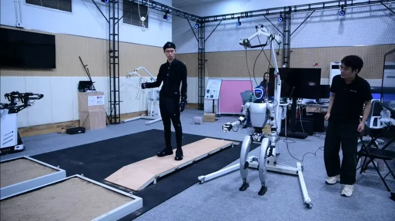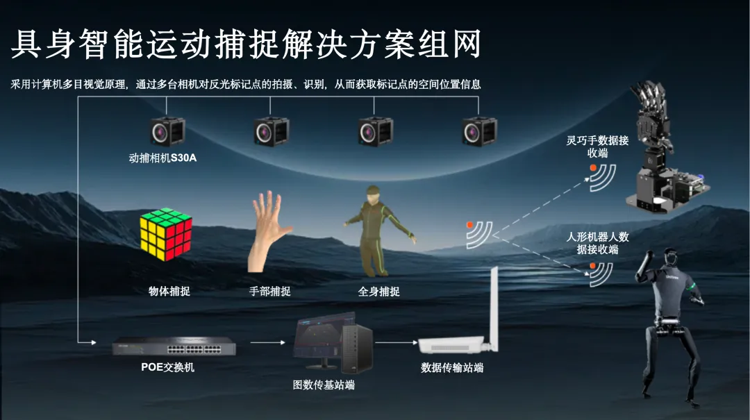 高精度数据采集训练系统,将捕捉到的人体长序列复杂动作,精准映射至机器人URDF模型,再通过深度学习算法优化运动轨迹与关节角度解算。在这一过程中,我们采用“模仿学习引导 + 强化学习优化”的先进框架训练机器人运动小脑,有效突破了长序列动作的泛化性限制。通过仿真训练结合监督微调,最终让机器人实现“站稳不摔跤、动作更类人”的敏捷运动能力,并成功部署至真机验证。
