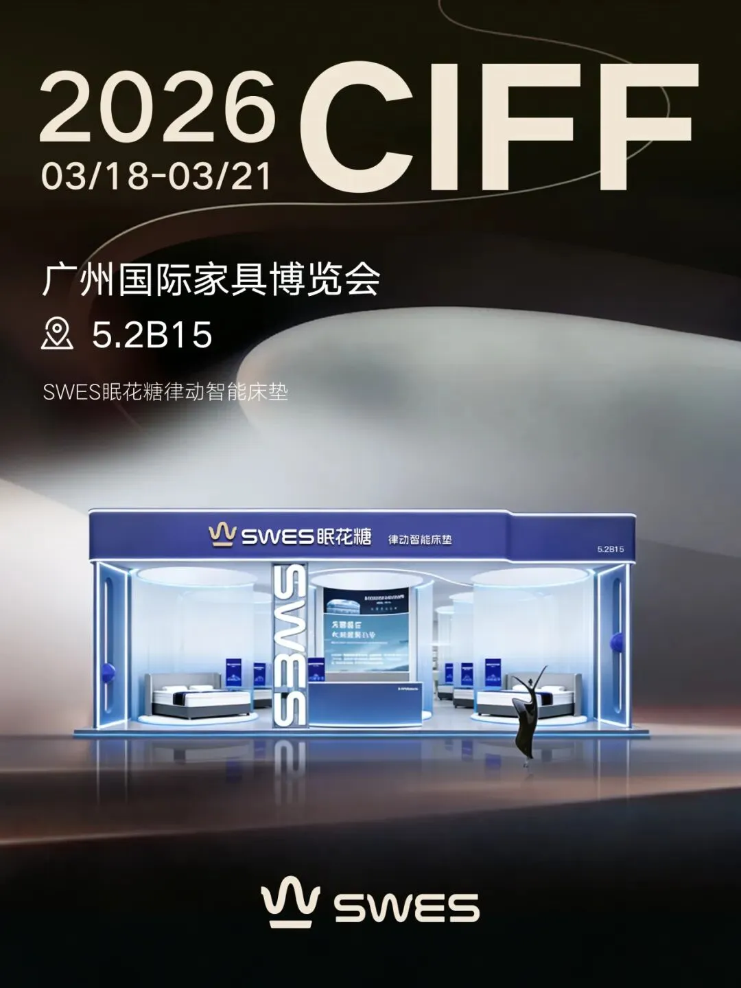 3月18日-21日,广州琶洲·广交会展馆5.2馆B15展位,SWES眠花糖诚邀海内外客商亲临体验。在这里,你可以感受一套真正由内而外、为你思考的智能睡眠系统。