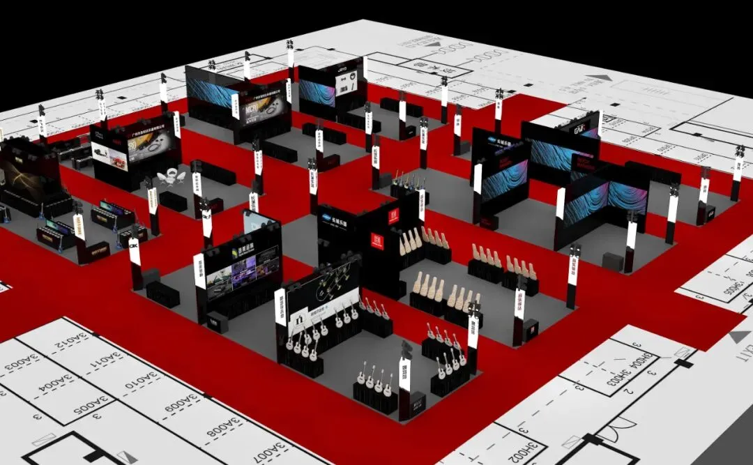 本届展会将以陈列展示模式为重点,组委会力争将3号馆打造成电声馆!同时全馆不设置表演舞台(在2号馆单独开辟展演舞台,见下),极大地为电声乐器爱好者舒适观展,展位效果图:
