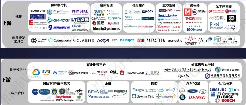 产业链方面,量子计算产业链上游主要由硬件和软件开发工具包组成,中游则是量子计算机整机和相关软件,下游则是服务平台和应用合作方面。