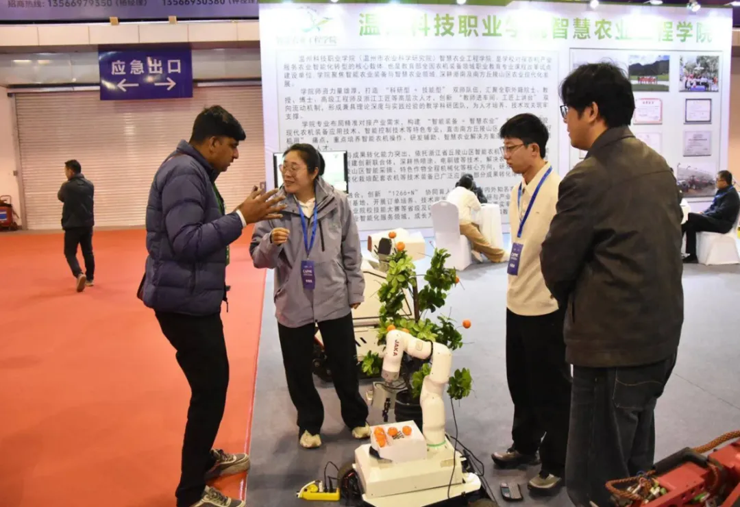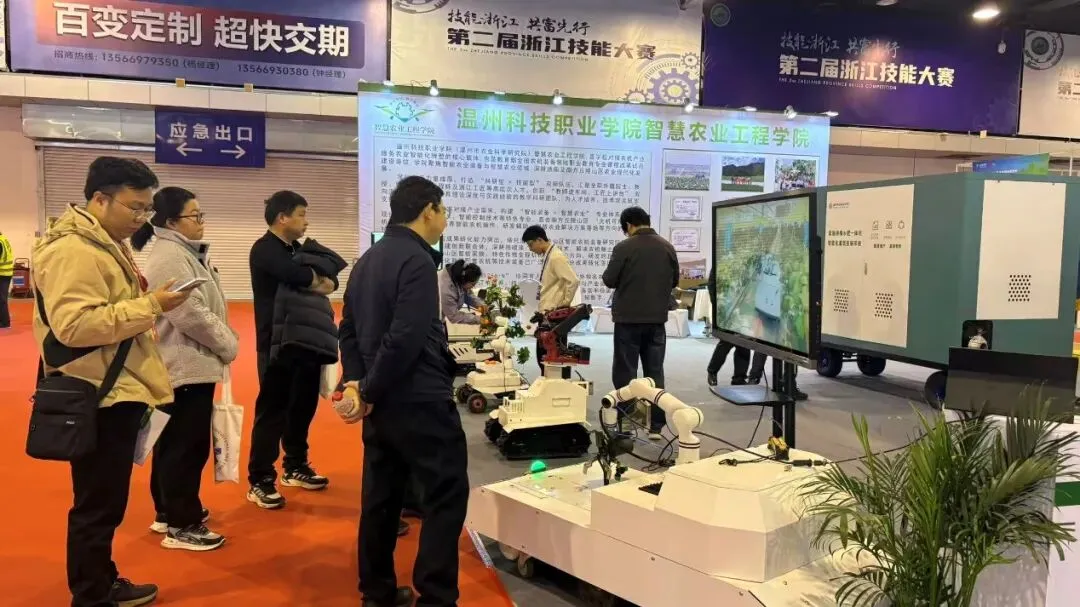 本次展会,温州科技职业学院展示的核心展品均为智慧农业领域的创新成果,聚焦果园管理、果蔬采摘、精准灌溉等农业生产关键环节,以技术创新推动农业生产“机器换人”,为农业生产提质增效提供切实解决方案。