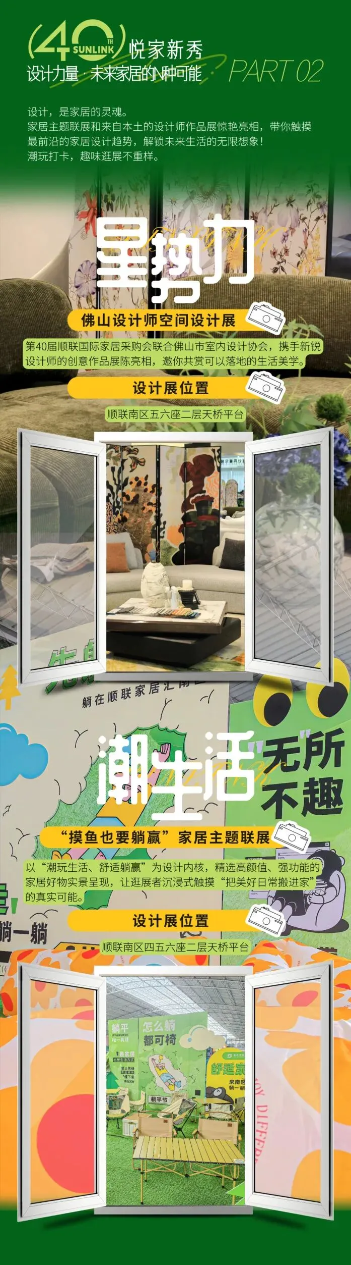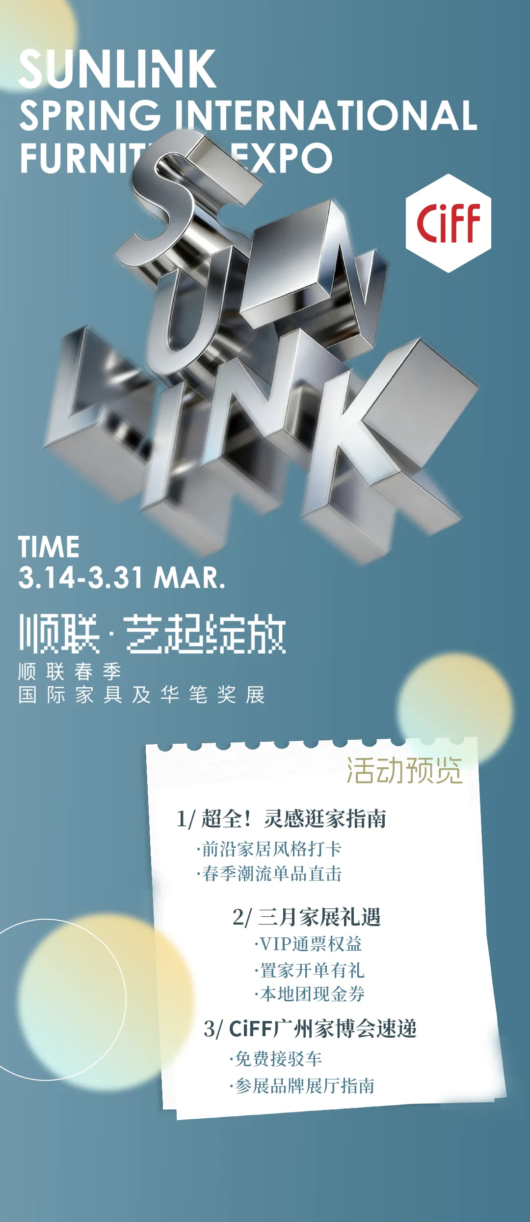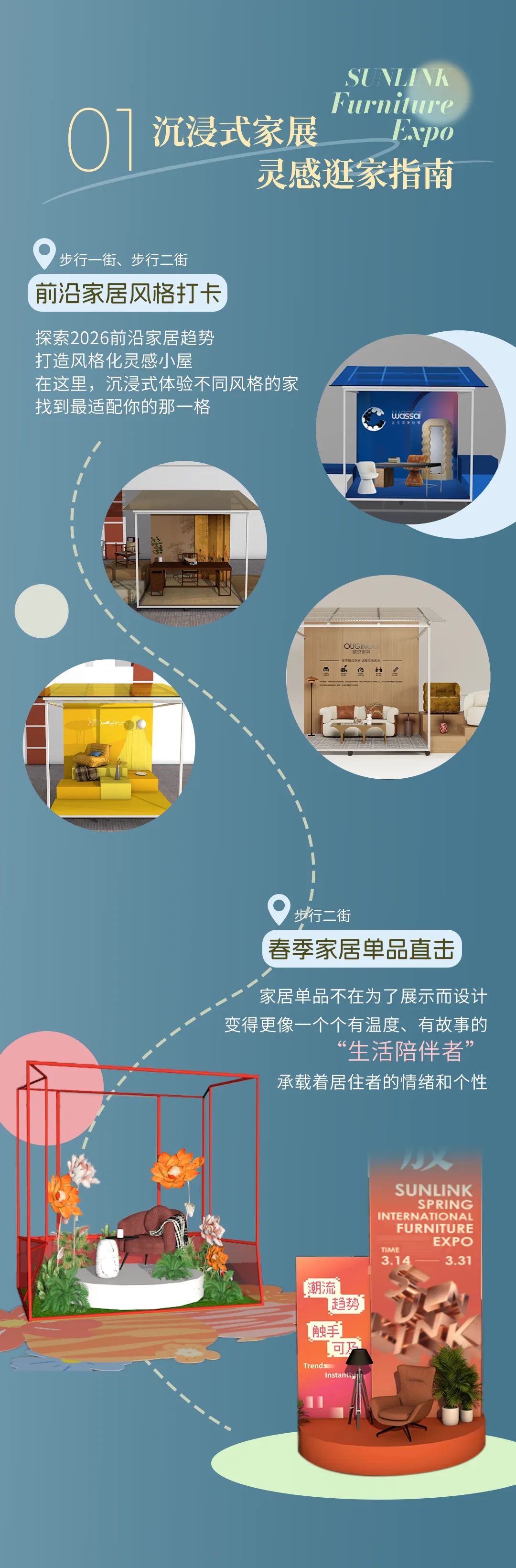 本次家展以“艺起绽放”为主题,汇聚1000+国内外知名家居品牌,全景式,沉浸式展现2026年家居设计前沿趋势。展会现场精心打造多个春季家具单品与家居风格主题展区,涵盖现代、中古、轻奢、宋氏美学、户外自然、当代艺术等多元风格,真实还原理想人居的多种可能。值得一提的是,展品与广州CIFF展、深圳家居设计周同步呈现,消费者可在顺联家居汇沉浸式体验、触手可及前沿设计。
