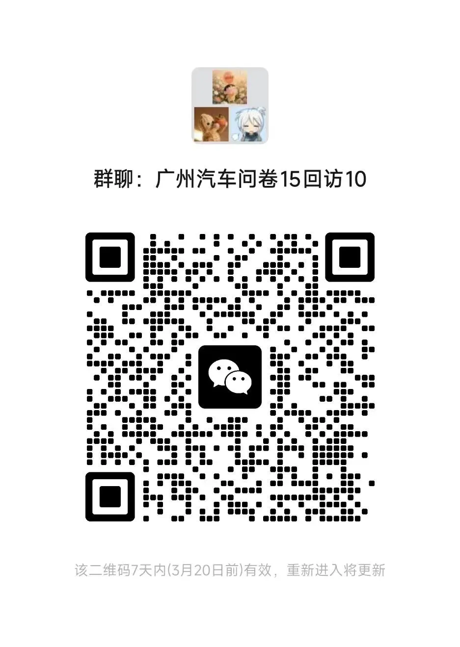 25元线上填一份汽车访问的问卷,费用15元+回访电话10,有意愿的进群,不用任何个人资料,仅限人在广州的,之前做过的不能再做,要对新能源汽车有几基础了解的,要填40多分钟