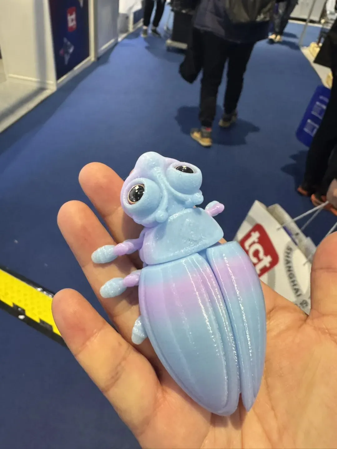 很多很有意思的3D打印材料。工业的,军用的,民用的。现场卖3D打印鞋的,说市价一千多,这里只卖499,摸了摸实在太硬了,算了算了。一个展会如果好好看下来的话,基本就能把整个产业链从上游到下游的模式了解的一清二楚,比看书学习和道听途说来的更真切。扫码兑换了一个丑丑的3D打印的小蝉,回去给女儿玩儿~建议大家有空可以多出来走走逛逛,一来看看大家现在都在做些什么,发展到什么程度了;二来找找新东西和灵感。不要只拘泥于自己的行业和领域,跨界可能会给自己的一亩三分地注入新的活力和创意。一边走一边看一边脑力激荡是很有意思的事。再者都说大环境怎么怎么不好,但是出来看看,有些行业还是充满了活力和生机,那我们不妨好好思考一下,为什么他们这么热闹?我们可以借鉴什么?头部企业拓竹科技,全球市场占有率29%,目前年营业额超过100亿,而这只是个成立仅五年的公司,why?how?越来越多新兴公司一跃而起,迅速发展壮大,这也给很多按部就班,以为一定要经年累月才能发展起来的传统企业,好好上了一课。