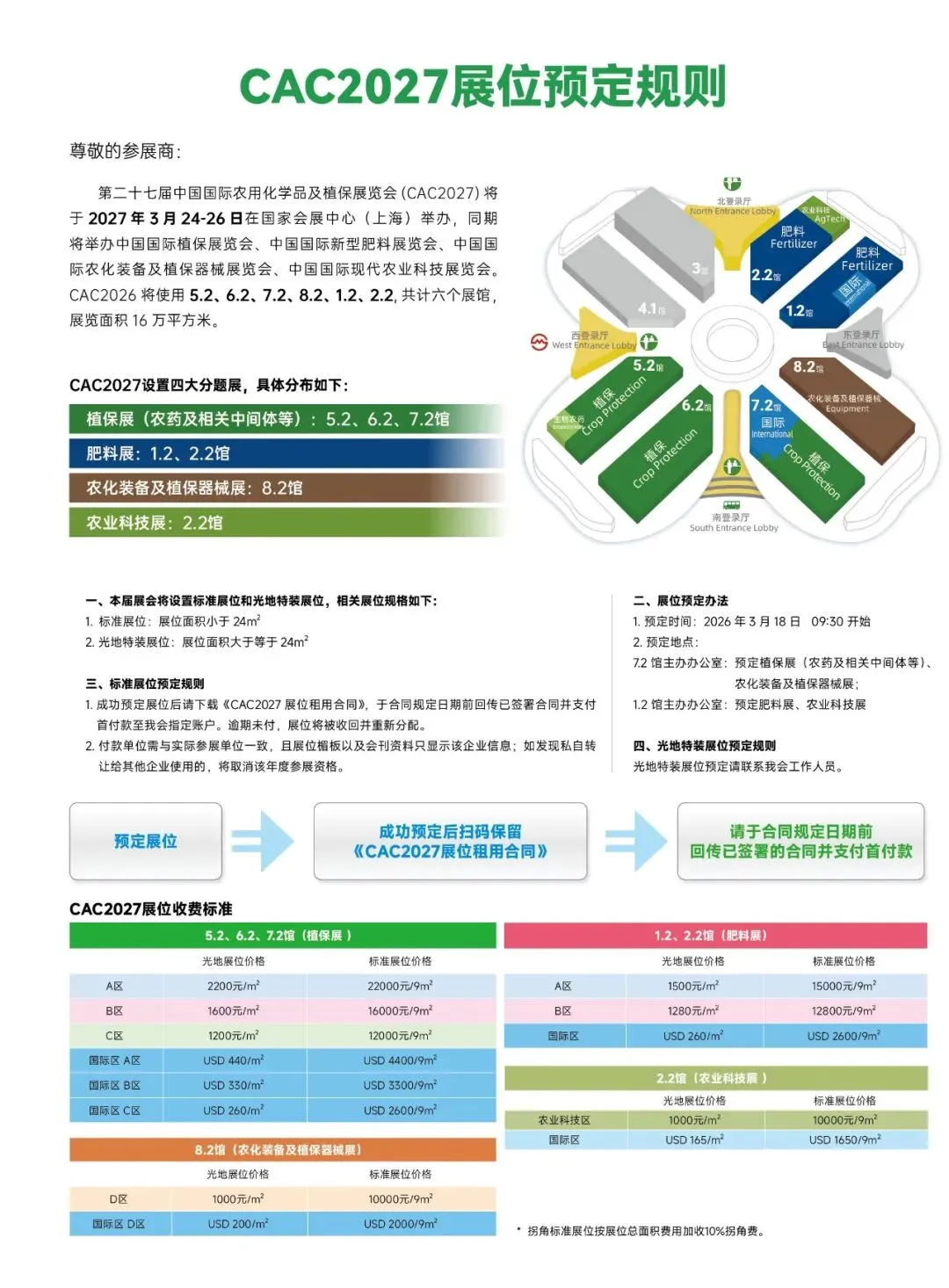 2026年3月18日,植保及装备展商请到7.2馆主办办公室咨询预定,肥料及农业科技展商请到1.2馆主办办公室咨询预定。
