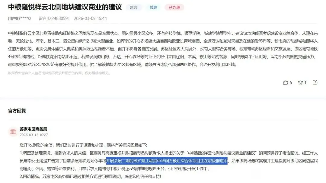 最后,抛开万象汇来不来和在哪建设的问题。我个人认为苏家屯区的购买力其实是有的,虽然是郊区,虽然老龄化严重。但是如果有地铁方便且品质好的商业体,那还是能支撑起来的。毕竟南京南街两侧可是一堆年轻的工人阶级群体定居呢,他们平时都去全运万达和龙湖天街了,如果会展板块能有万象汇,他们也会选择更近的地方来消费。