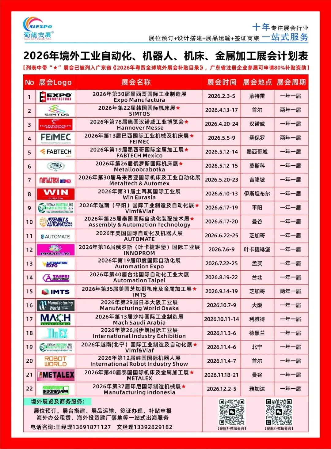2026全年全球展会计划表