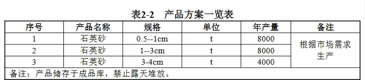 项目的原料为石英石,具有较好的利用价值,对项目原料进行破碎,筛分,清洗等工序,变成产品石英砂,本项目年产2万吨石英砂。产品石英砂主要用作冶炼碳化硅,用作普通磨料,质量标准执行《普通磨料 碳化硅》(GB/2480-2022)标准:冶炼碳化硅要求石英砂二氧化硅(SiO2)含量比较高,一般要求SiO2含量>95%。