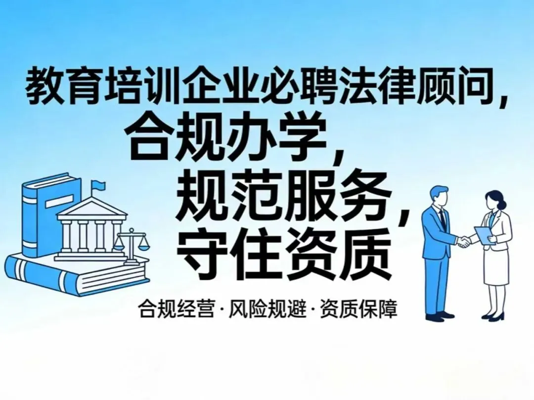 教育培训企业的办学和合规风险,就像开车上路无牌无证,随时可能被查、被处罚。很多老板认为“法律顾问费用高,小型机构没必要请”,却不知相比吊销资质、企业倒闭的代价,每年 2-3 万元的顾问费只是小额支出。对于教育培训中小企业而言,合规办学不是选择题,而是生存题,聘请专业法律顾问,提前防范风险,才能在政策监管下站稳脚跟,长久发展。