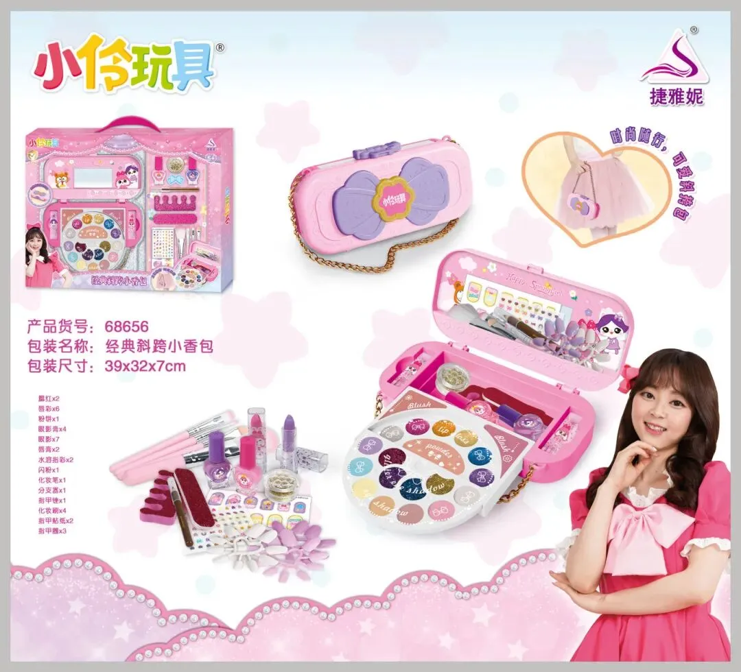 小伶玩具经典斜跨小香包以粉紫蝴蝶结造型打造时尚便携的美妆百宝箱,可斜挎也可手提。内含口红、唇彩、眼影、美甲工具等丰富配件,采用儿童专用水溶性彩妆,易清洗不伤肤,让孩子随时随地变身小小美妆师。