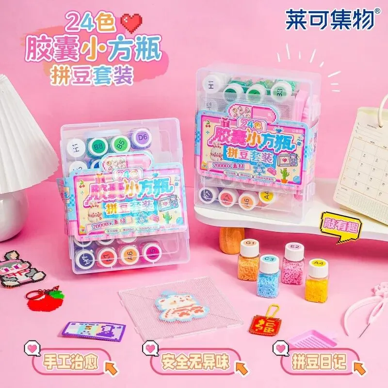 莱可集物24色胶囊小方瓶拼豆套装,内含20000余枚丰富素材,色彩饱满、安全无异味。小方瓶收纳设计整洁便携,搭配专业工具,轻松解锁多样创意手作,治愈解压,是手工爱好者的趣味之选。