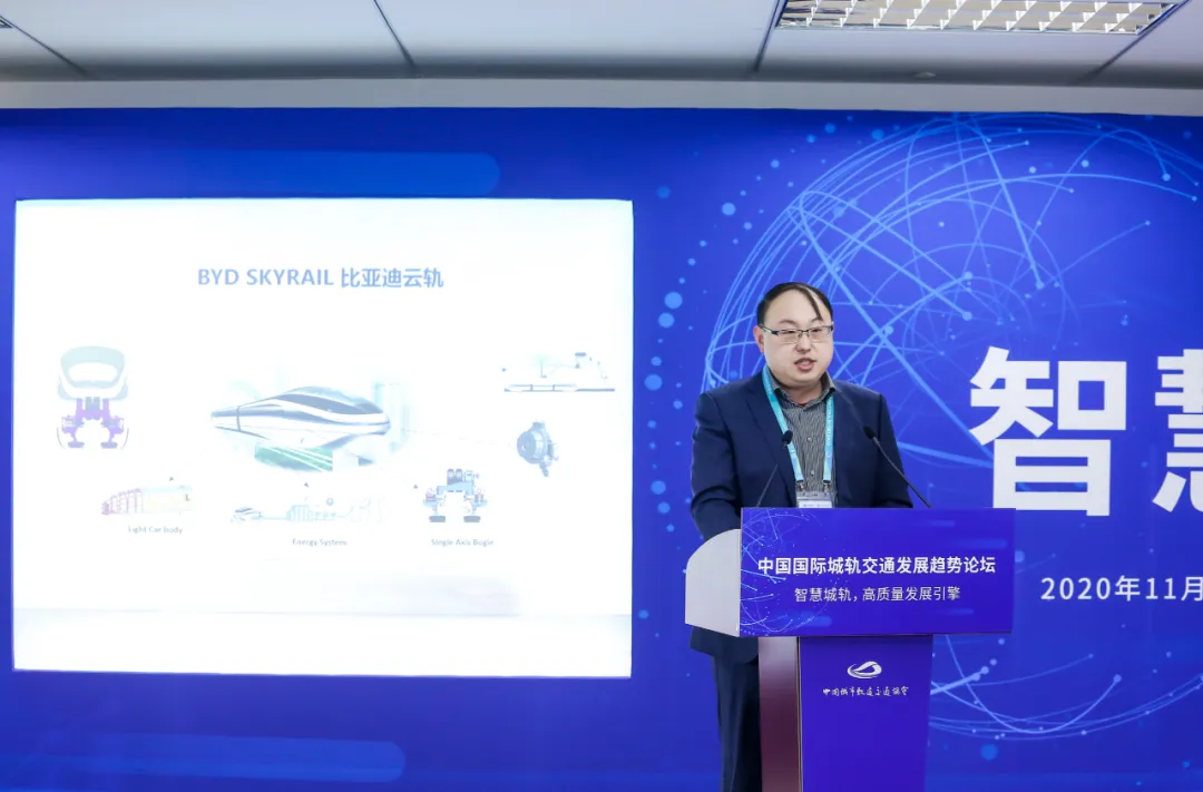比亚迪股份有限公司海外项目总工涂远介绍了跨座式单轨“云轨”国际化征程。