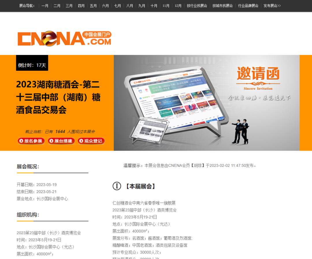 2023第23届中部(长沙)糖酒食品博览会(以下简称“2023中部长沙糖酒会”)将于5月19-21日在长沙国际会展中心举办。目前,展会已进入最后的倒计时阶段。