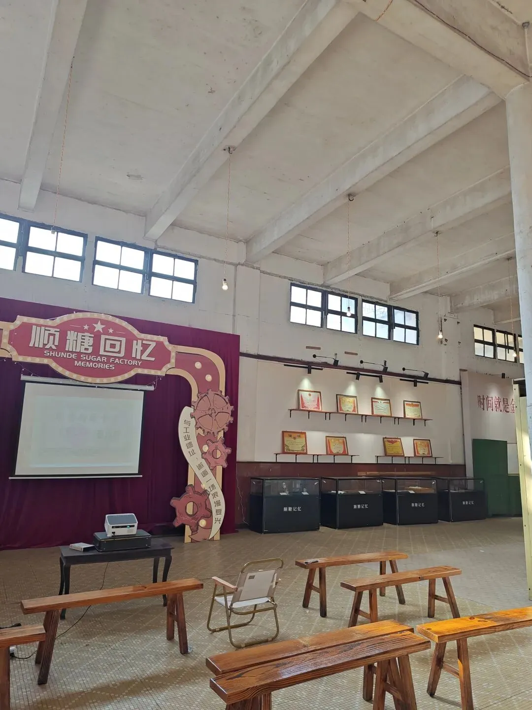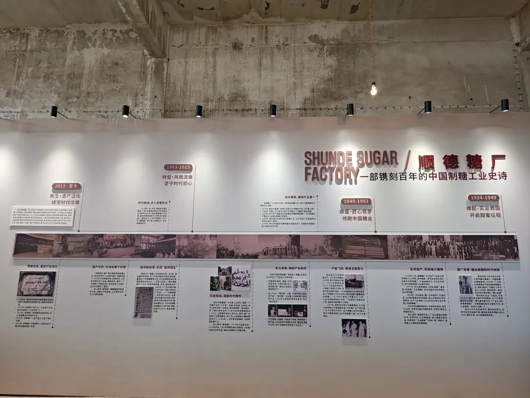 进顺德糖厂走了几步先是看到一间写着“顺糖回忆”的屋子,里面有幻灯片在播关于这间糖厂的一切,以及它的发展史。