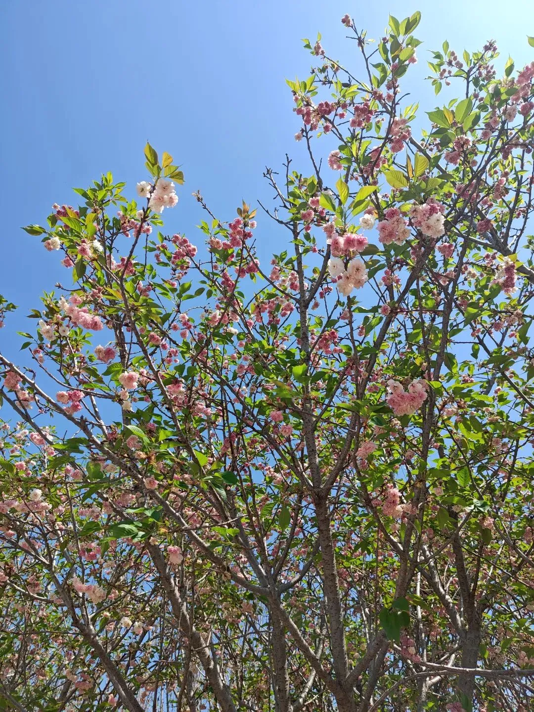 在秘境花园前面有一片樱花丛,好在来得不算太迟,尚有一两棵还有满树樱花,其他的都已凋谢,满满一地枯萎的樱花。实不相瞒,我来这很大原因也是被红书上的樱花图给诱惑来的。开得正盛的樱花确实抓眼啊,是一种极温柔极温柔极温柔的粉色,蓝天做衬,它们是春天的笑靥。