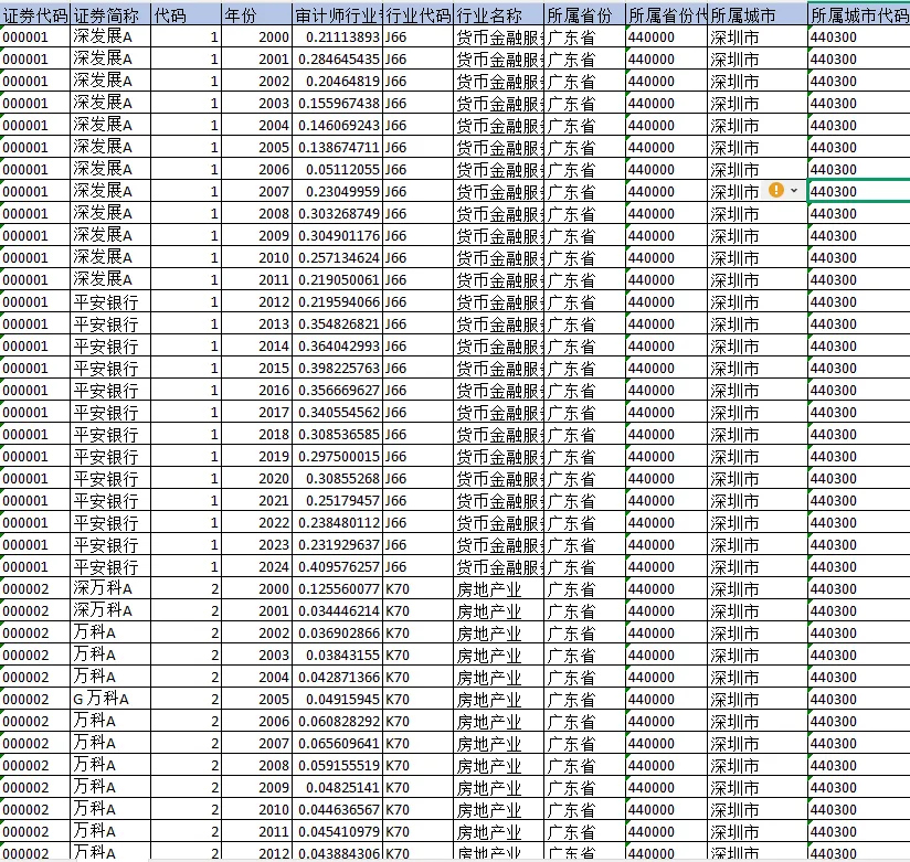 证券代码 证券简称 代码 年份 审计师行业专长 行业代码 行业名称 所属省份 所属省份代码 所属城市 所属城市代码