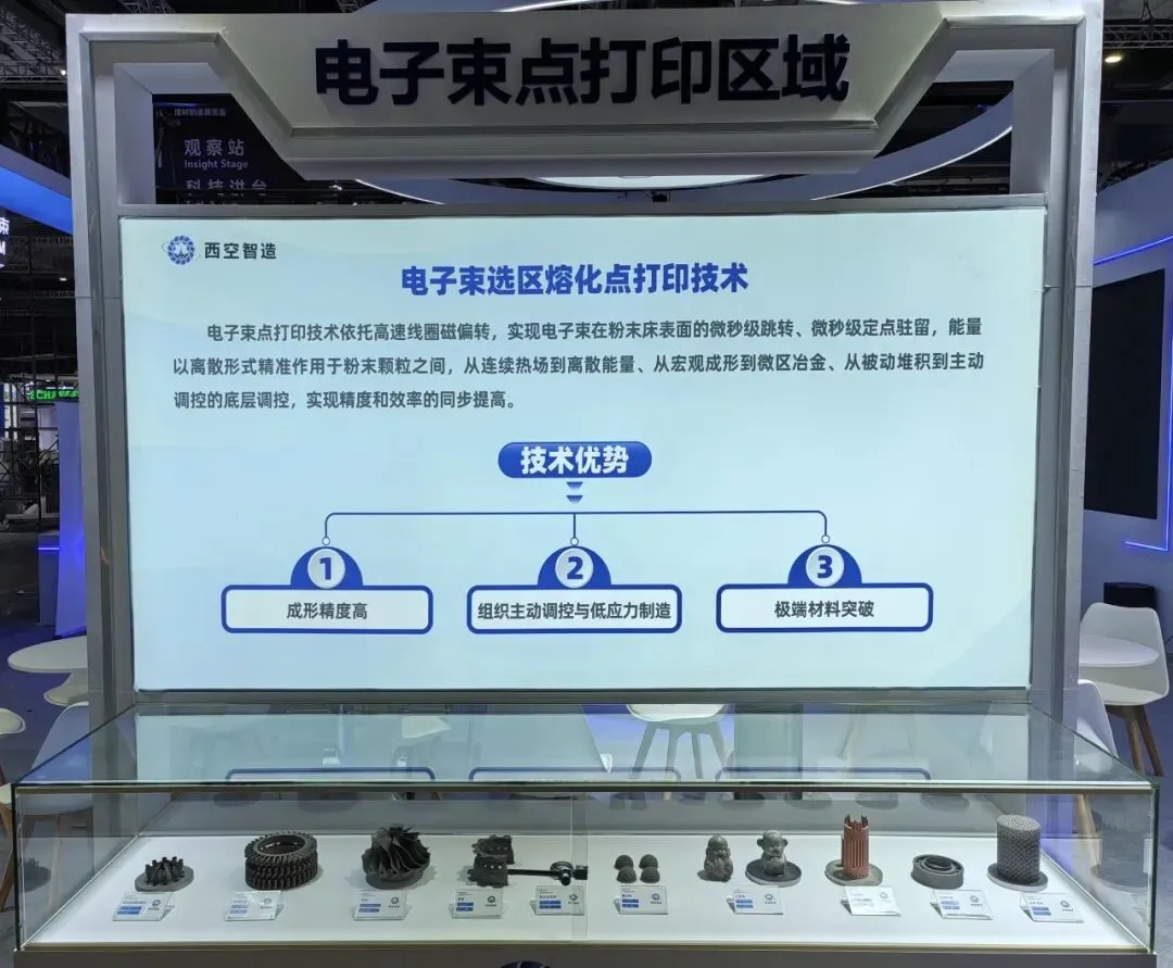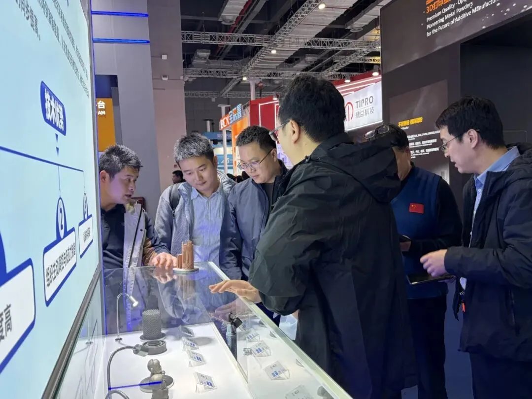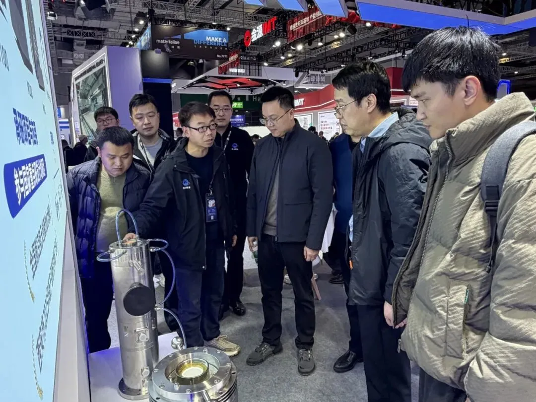 电子束点打印展示区是展位的人气区域之一。现场陈列的自主研发的电子枪及点打印技术样件,直观呈现了“点阵式能量沉积”的成形效果。技术团队通过动态路径规划与过程实拍视频,向观众详细讲解该技术如何突破传统连续扫描模式,实现微观组织的主动调控。来自核工业、航空航天及难熔材料研究领域的专业观众,就钨、钼、钛铝等材料的成形工艺、组织调控等关键技术问题与工程师进行了深入交流。