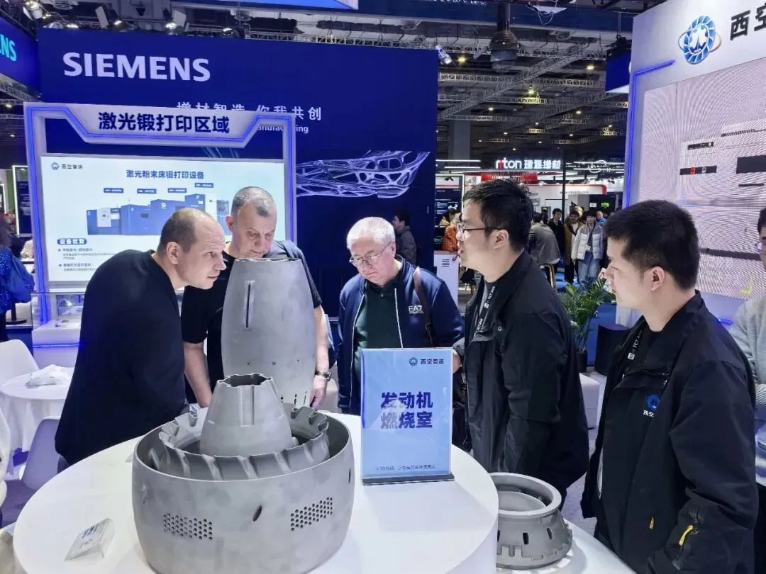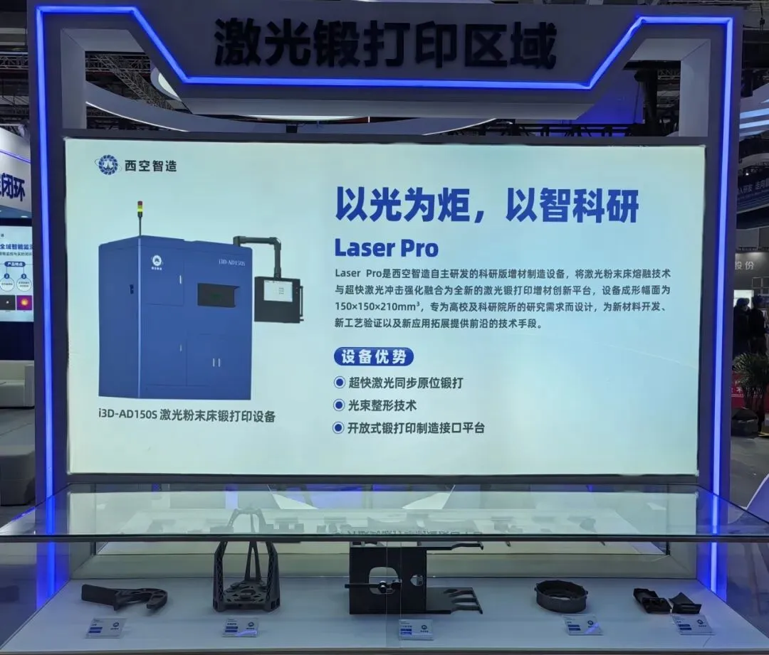 激光锻打印技术展示区同样吸引了众多专业目光。i3D-AD150S平台集成的连续激光成形、激光冲击强化、高质量锻打印、光束整形四种工艺模式,展示了其在复杂构件制造与新材料开发中的适用性。现场陈列的涡轮空心叶片、点阵结构、薄壁件等高难度样件,以良好的表面质量和细节呈现赢得了观众的认可。多位来自高校和科研机构的观众就光束整形对难成形材料加工效率的提升、锻打印对残余应力的调控效果等问题与技术人员展开讨论。