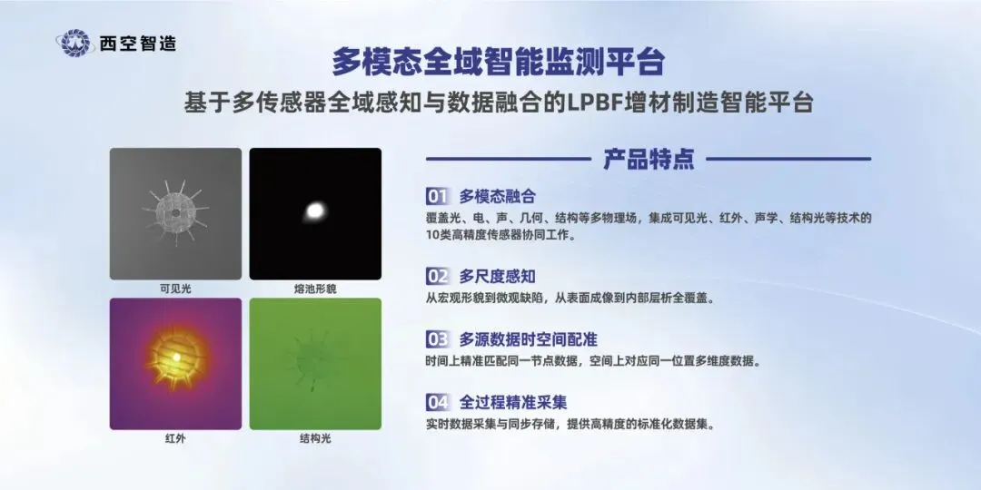 在智能监控系统展示区,西空智造首发的“多模态全域智能监测平台”成为焦点。该平台集成光、电、声等10类高精度传感器,依托自研在线闭环调控模块,可在LPBF过程中实现实时工艺参数调整。现场技术团队通过视频演示,直观呈现多源传感融合与缺陷识别的技术路径,吸引了众多从事工艺研发与质量控制的专业人士驻足询问。多位观众就平台与现有设备的兼容性、数据接口标准等实际问题与工程师展开深入交流。