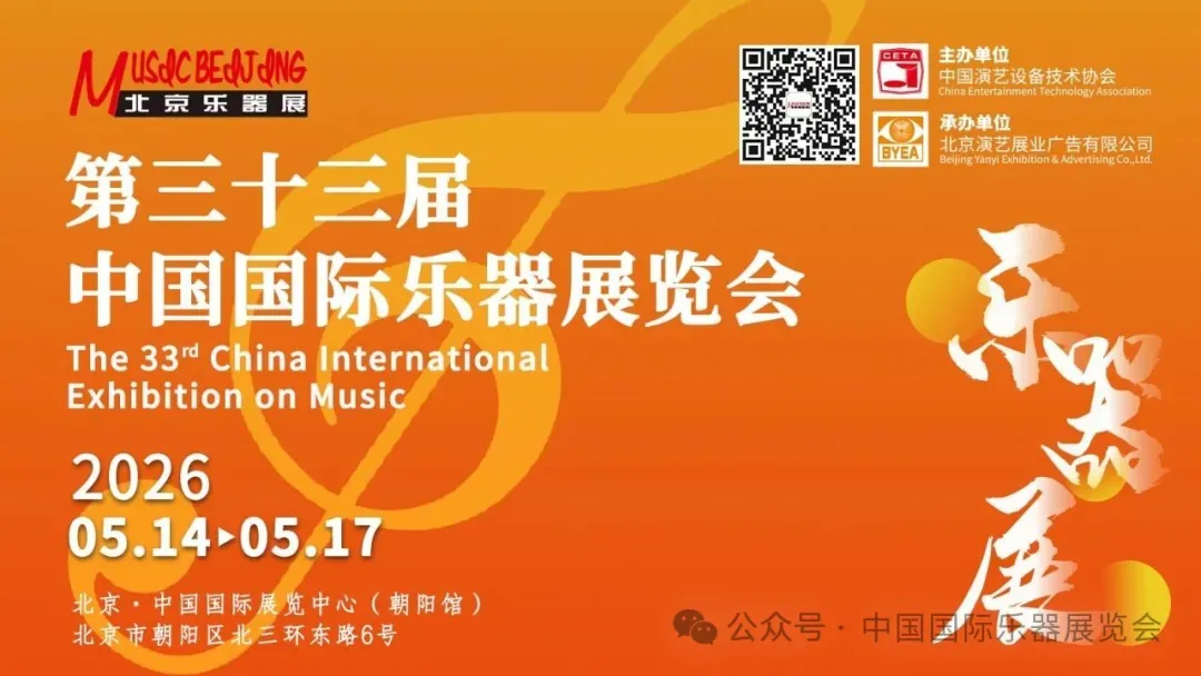2026年5月14日-17日,备受关注的第三十三届中国国际乐器展览会(北京)即将在北京·中国国际展览中心(朝阳馆)盛大开幕。