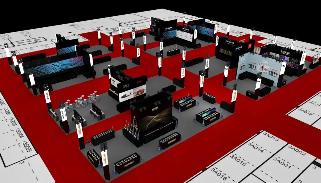 本届展会将以陈列展示模式为重点,组委会力争将3号馆打造成电声馆!同时全馆不设置表演舞台(在2号馆单独开辟展演舞台,见下),极大地为电声乐器爱好者舒适观展,展位效果图: