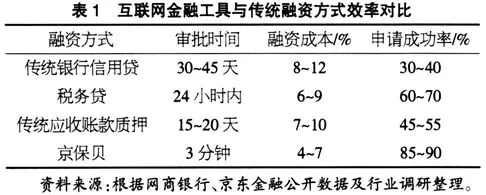 通过对比分析,互联网金融工具在多个关键指标上显著优于传统融资方式(见表1)。在审批效率方面,传统银行信用贷的审批周期通常为30~45个工作日,而基于大数据风控的税务贷可在24小时内完成审批,网商银行创造了“310”小微贷款模式(3分钟在线申请、1秒钟审核放贷、0人工干预),审批效率较传统方式提升超过1 000倍。在融资成本方面,互联网金融工具借助技术手段降低了运营成本和风险溢价,京东供应链金融为客户直接节约融资成本累计超5 000万元,平均融资成本比传统方式低2~3个百分点。在服务覆盖能力方面,互联网金融工具切实提升了金融服务的普惠性,2021年互联网金融平台新增客户中,80%为经营性贷款“首贷户”,有效填补了传统金融的服务空白。此外,申请成功率的提升得益于大数据风控技术对企业信用状况的有效精准识别,这一技术降低了信息不对称程度,让更多符合条件的中小企业能够获得融资支持。