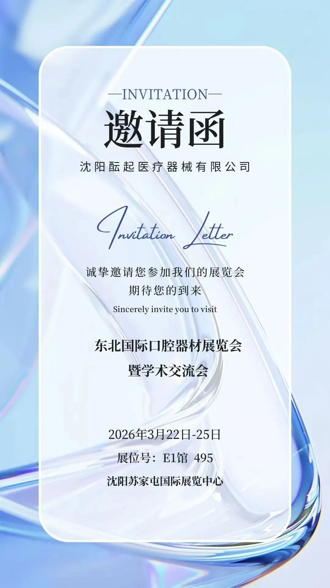 作为扎根沈阳的口腔医疗设备专业服务商,沈阳酝起医疗器械有限公司诚挚邀请您莅临我们的展位,共赴这场东北口腔界的开年盛会。