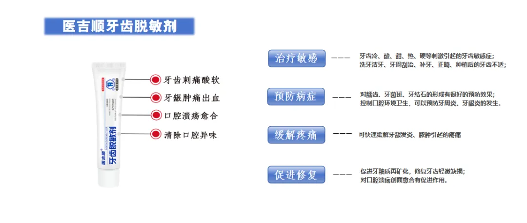 沈阳酝起医疗器械有限公司以“健康从口腔开始”为理念,专注于口腔护理领域,并与陕西恒远生物科技有限公司合作推出核心产品“医吉顺®牙齿脱敏剂”。该产品基于第四军医大学原研技术,效果显著,能帮助患者快速缓解牙齿敏感,提升就诊满意度。同时公司还销售口腔溃疡含漱液、口洁漱、儿童防龋牙膏、儿童早矫类产品及隐适美定制式矫治器、保持器等二类医疗器械。公司持续深化与牙科诊所及口腔医院的渠道合作,凭借源头技术背书与产品实用性,致力于提供专业的口腔护理方案,推动行业标准建设,努力成为值得信赖的口腔健康服务引领者!