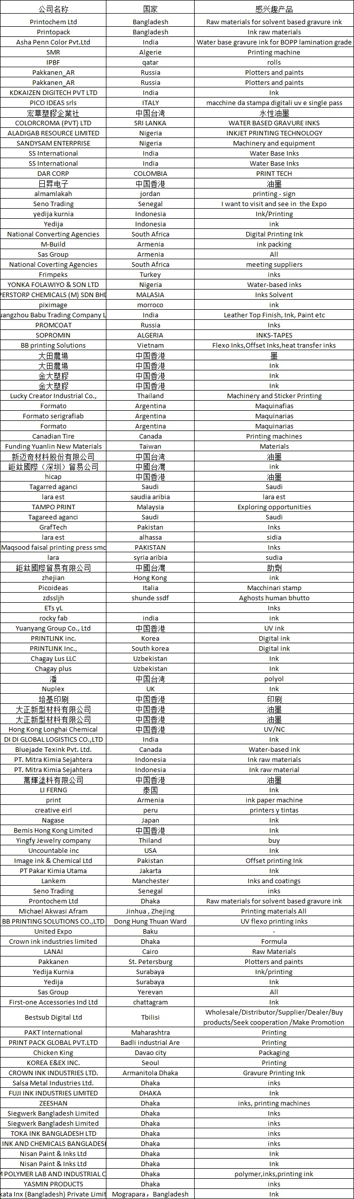 截至目前,已有来自亚洲、欧洲、非洲、美洲等全球五大洲30余个国家和地区的专业采购商完成参观登记,覆盖油墨产业链上下游核心买家。涵盖国家及地区包括: