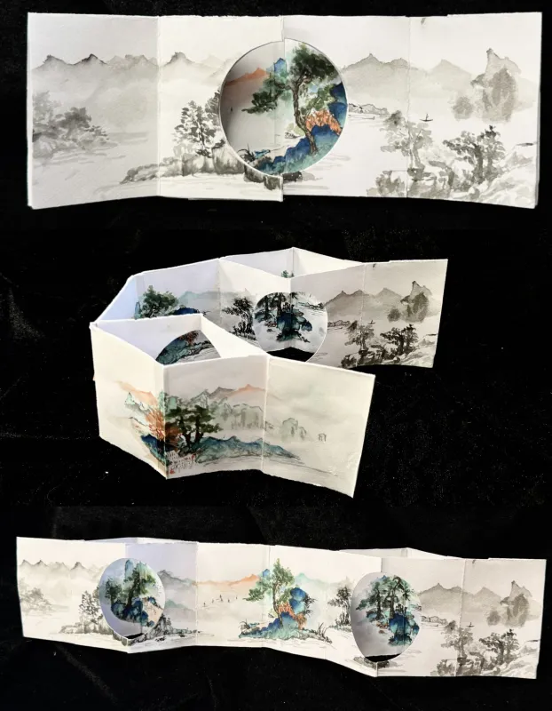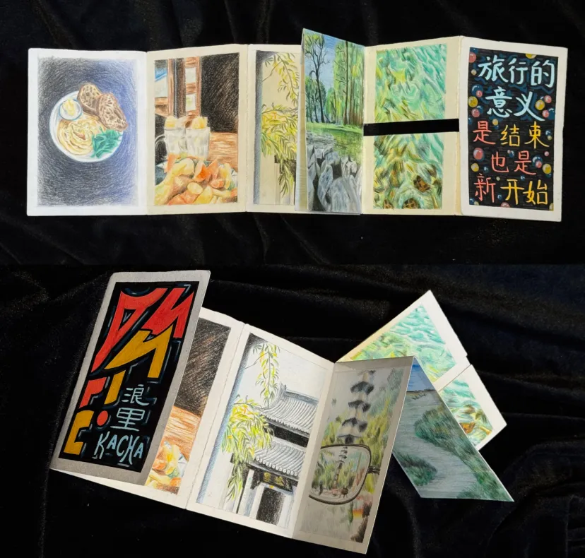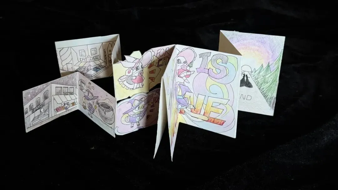 一纸书这一极简却极具张力的形式:无需复杂装订工序,仅凭一张完整纸张,经折叠、裁剪、手绘、排版,用最简单的形式,直击书籍制作的核心魅力,也为同学们预留了广阔的创意空间。