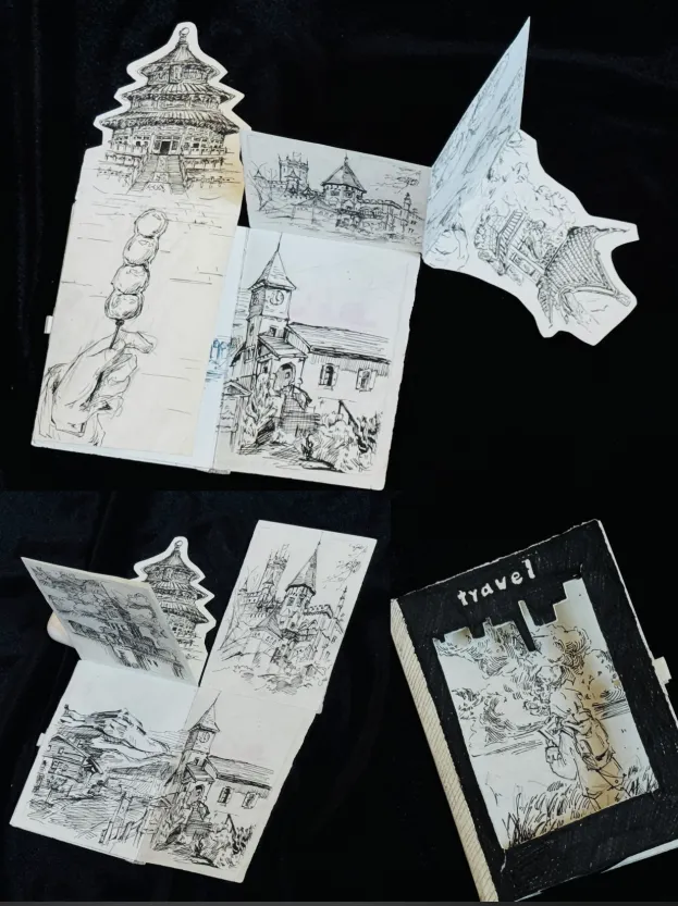 有将传统线装的肌理、古籍的版式融入设计,于简约中藏着对传统文脉的温柔致敬;有把自己的读书感悟、诗词摘抄、原创故事写进书页,让一纸书成为了专属自己的精神小世界;有的用创意折叠结构打造出“翻页惊喜”,打破常规阅读体验,让书籍有了互动的趣味;还有的将国风纹样、非遗元素、传统水墨融入插画,让少年创意与东方美学完美碰撞。