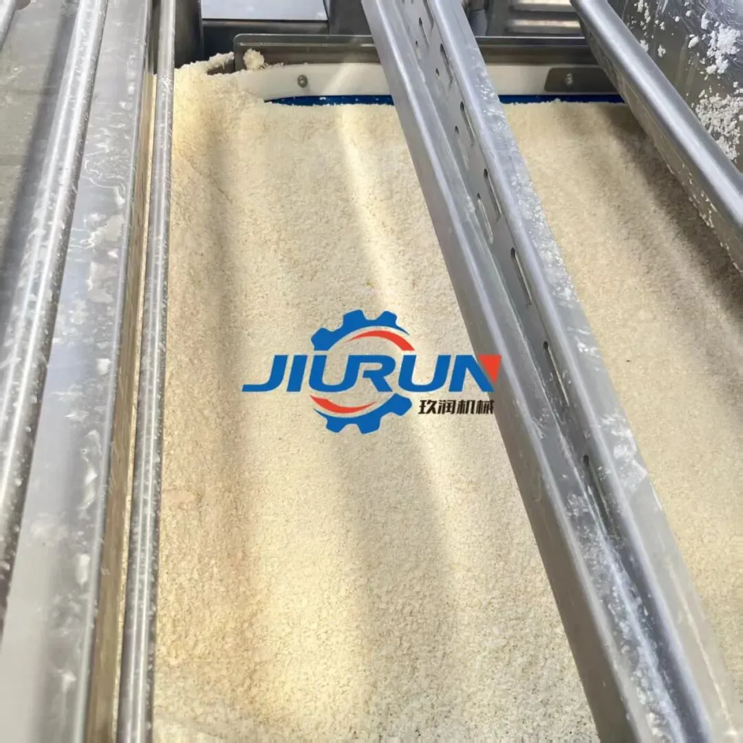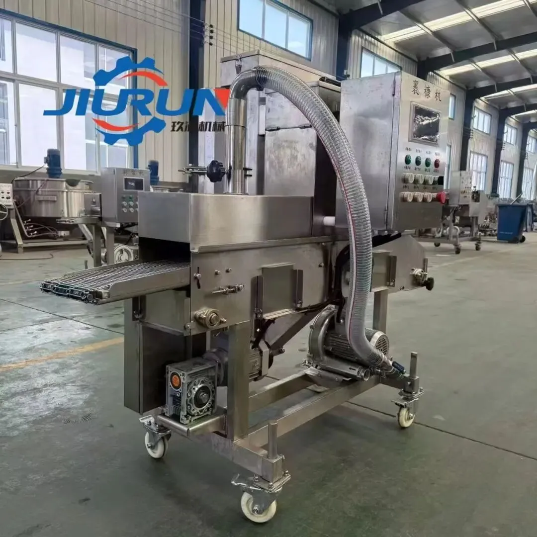 天妇罗虾上浆裹粉生产线 糍粑加工成套设备 自动上糠裹糠机 隧道式上面包屑机 自动裹面包糠设备 鸡排上糠机天妇罗虾上浆裹粉生产线 糍粑加工成套设备 自动上糠裹糠机 隧道式上面包屑机 自动裹面包糠设备 鸡排上糠机通过下粘上撒的方式浆面包屑均匀裹涂在鸡肉,牛肉,猪肉,鱼虾等海鲜产品上。粗屑,细屑均可上下粉层厚度可调强力风机及振动器去除多余粉料开合式螺杆,使清洗过程更简单变频器控制传送带速度。