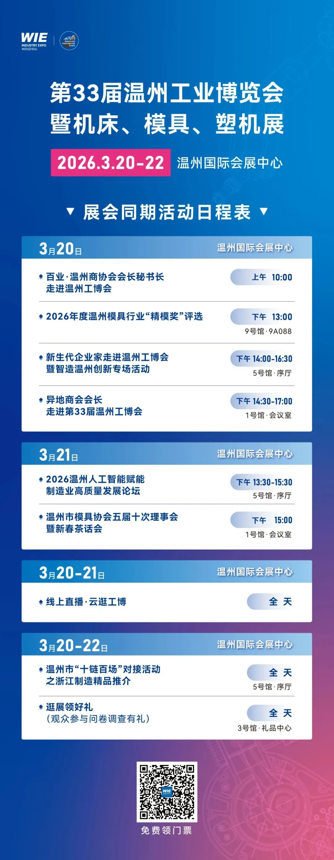 2026年是“十五五”规划的开局之年,制造业企业开年布局尤为重要。无论您是寻求技术升级、设备采购,还是洞察行业趋势、拓展商业人脉,2026年3月20日至22日,温州国际会展中心,这场制造业的春日之约,不容错过!