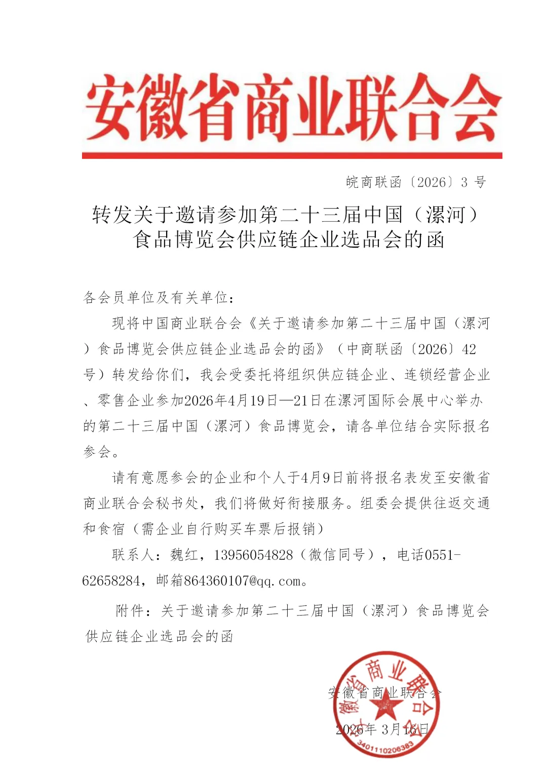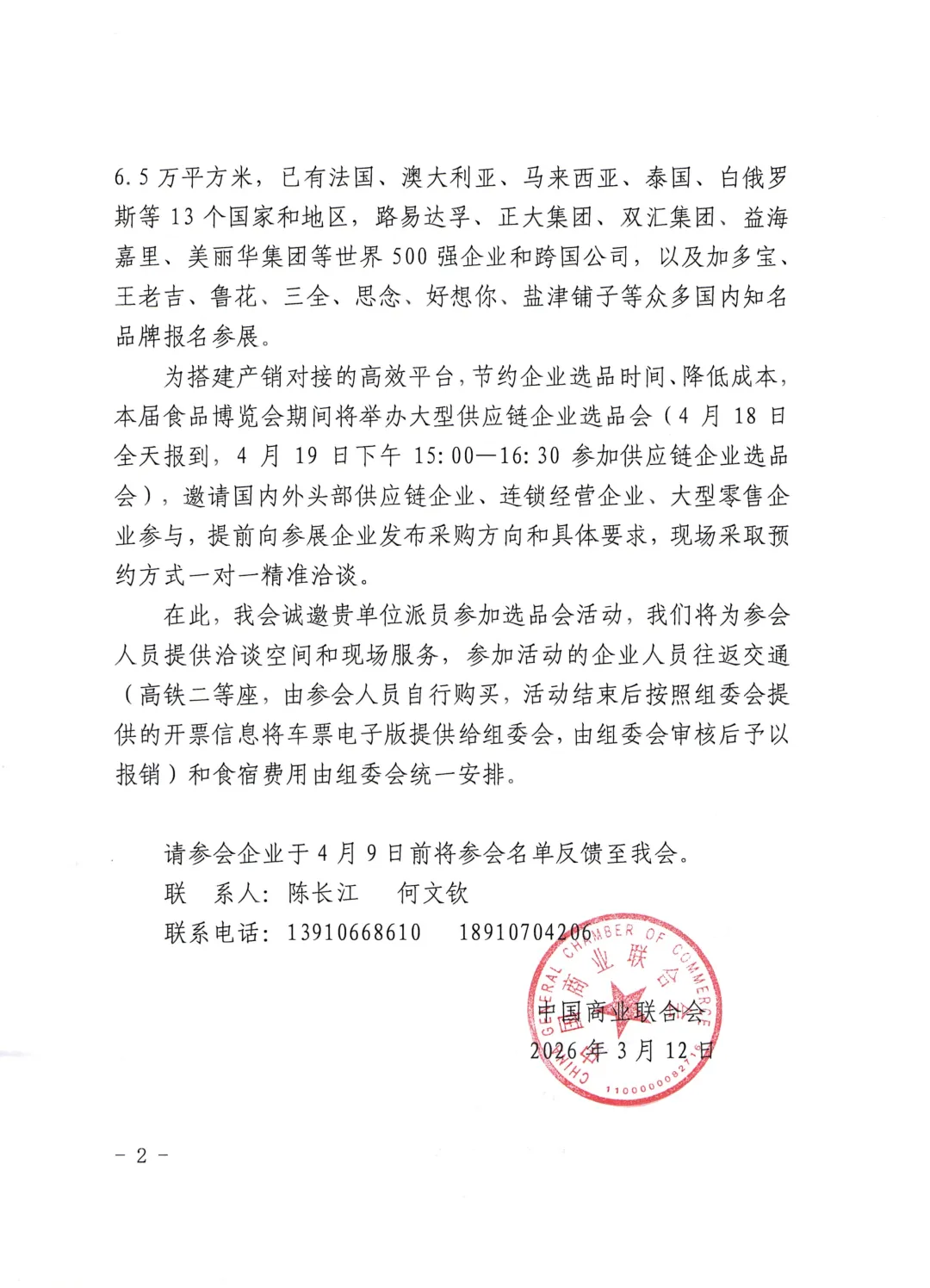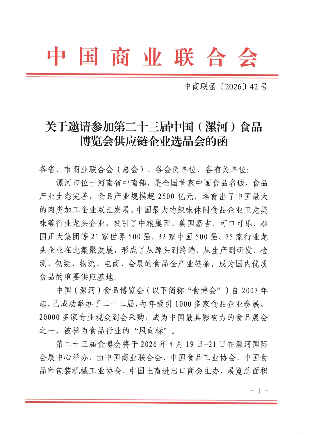 关于邀请参加第二十三届中国(漯河)食品博览会供应链企业选品会的函