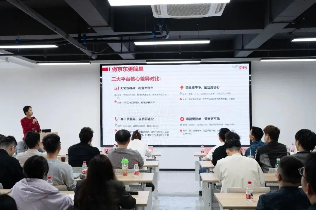 在商家分享环节,多位优秀商家代表结合自身实战经验,围绕“商用电器如何做好选品”“店铺从0到1的进阶之路”“工厂如何打造自有品牌”“京喜自营如何快速起量”等话题展开交流,为与会者提供了可借鉴的运营思路与转型策略。