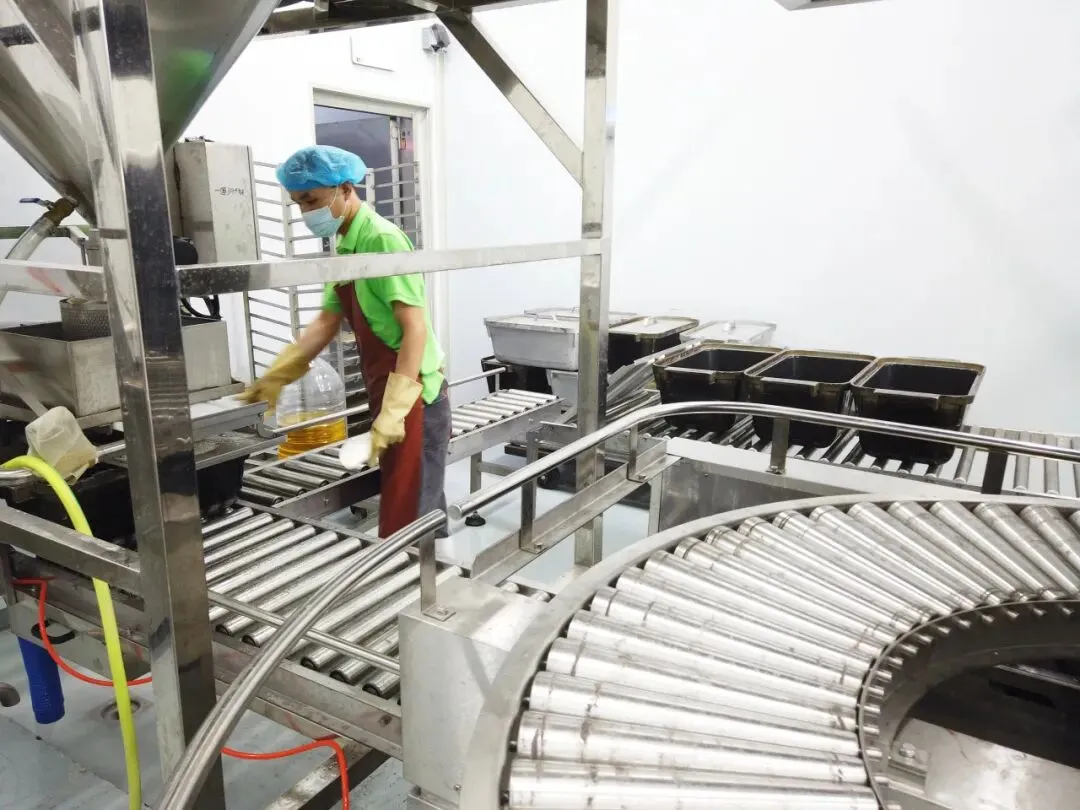 “好米有出处、好饭有香味”,餐桌上颗颗饱满、粒粒蓬松的一碗饭,其实要经历以下多个步骤,具体包括:生米进仓——洗米——浸泡——定量配米、配水——炊饭机——自动揭盖——扒松机——装箱——称量——贴标签——配送。