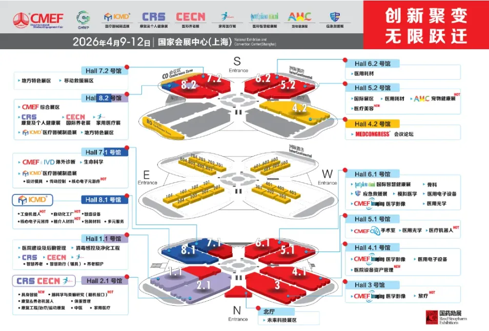 “创新聚变·无限跃迁”——第93届CMEF全新主题的正式发布,正宣告着全球医疗健康产业正处在技术融合临界点、即将迎接范式转换的关键时刻。创新不再是单一技术的突破,而是多重技术交汇的融合反应。当人工智能、脑机接口、具身智能、机器人精尖技术在医疗领域交汇时,产生的创新能量将重新定义医疗健康的边界。2026年4月9-12日,32万平方米的国家会展中心(上海)的展示空间也将转化为一个巨大的反应堆,近5000家全球企业的创新能量将在第93届CMEF系列展会现场对撞、聚变,引发一场席卷行业的链式跃迁。