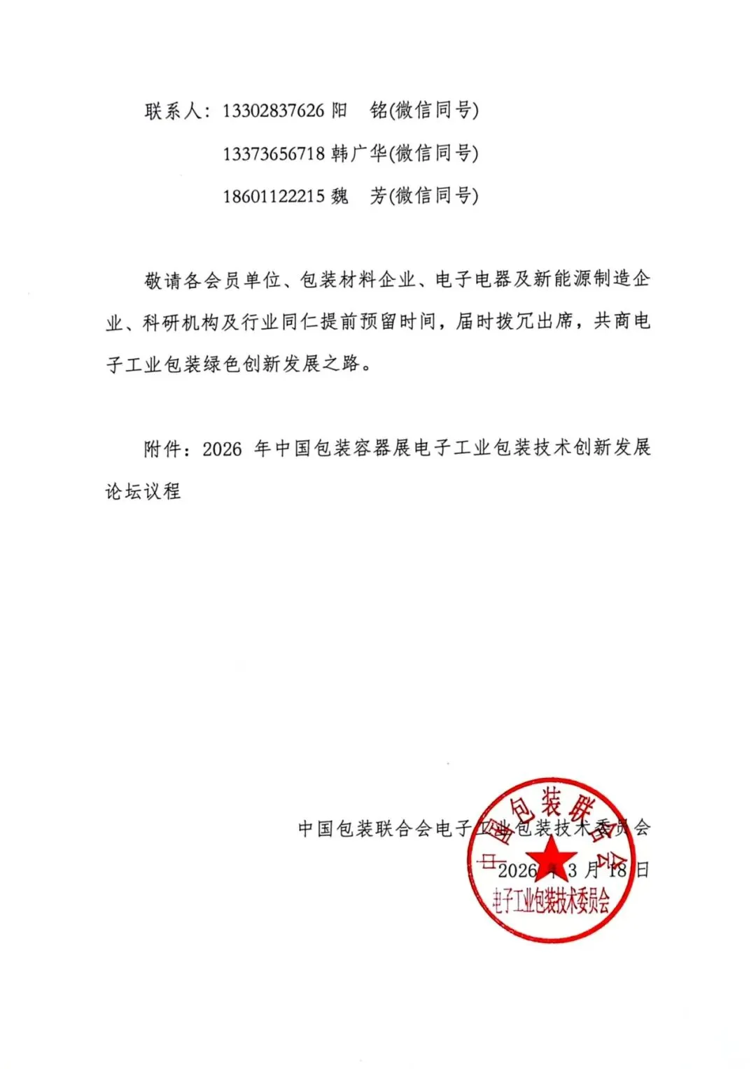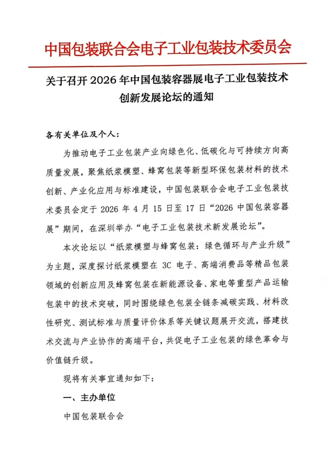 关于召开2026年中国包装容器展电子工业包装技术创新发展论坛的通知
