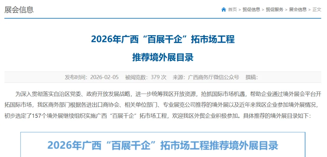《2026年广西“百展千企”拓市场工程推荐境外展目录》