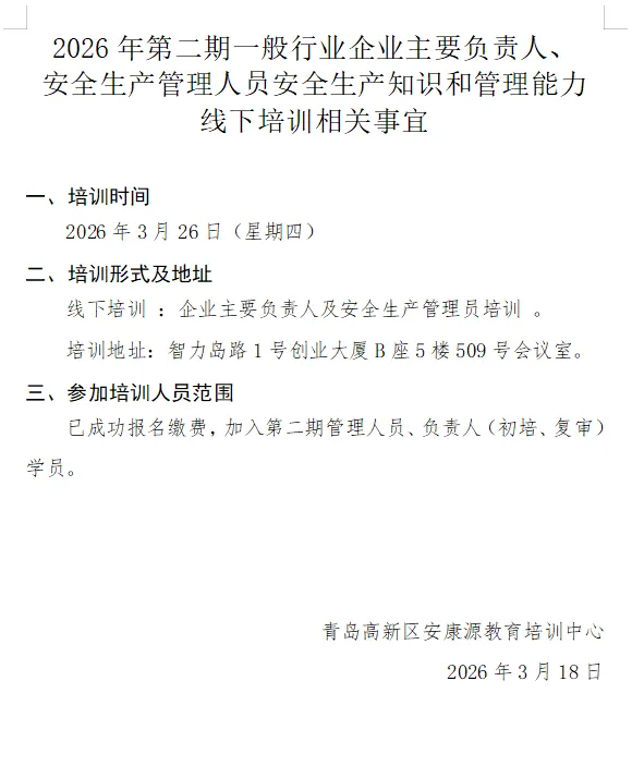 三、一般行业管理人员安全培训合格证
