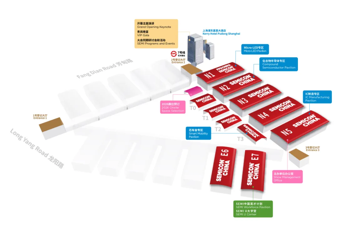 一年一度的全球半导体行业盛会SEMICON China 2026 将于3月25日至27日在上海浦东新国际博览中心举行,本次展会将覆盖芯片设计、制造、封测、设备、材料、光伏、显示等全产业,为业内人士提供行业最新动向与前沿趋势,以及高效、专业的交流平台。