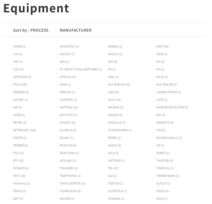 CIS Corporation处理主要OEM的大部分前端加工设备,同时通过自己的采购和各种招标不断采购和供应设备。 同时,相关技术服务和套餐(交钥匙)销售也提供给我们的客户。
