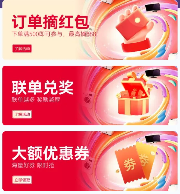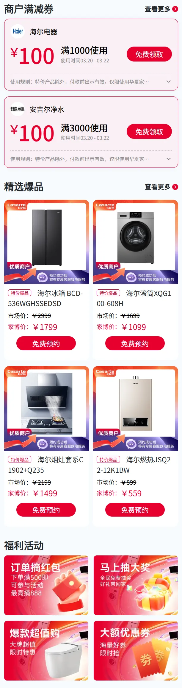 家电:厨房电器、生活电器、大家电,智能款、实用款一应俱全;