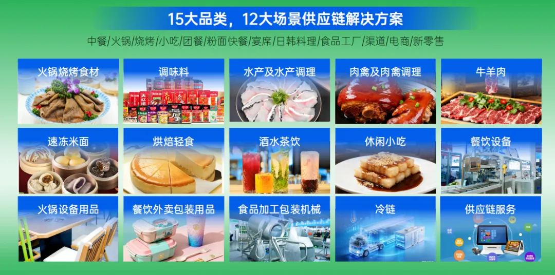 从火锅烧烤食材、调味料、肉禽水产、速冻米面、酒水饮品,到餐饮设备、包装用品、冷链服务、数字化系统……覆盖餐饮经营全链路。并为中餐正餐、火锅、烧烤、小吃、团餐、粉面快餐、宴席、日韩料理、食品工厂、渠道、电商、新零售等12大主流场景,提供定制化供应链解决方案。/ 海名·2026第14届成都餐饮供应链博览会/