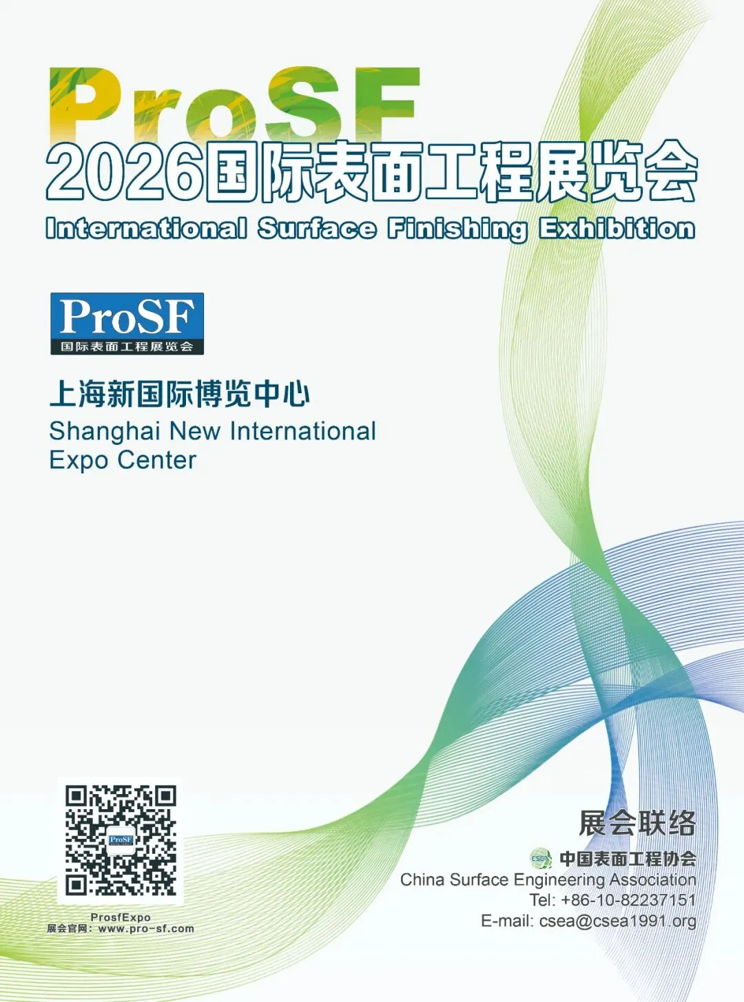 2026年7月15–17日,中国表面工程协会将在上海新国际博览中心举办“ProSF 2026国际表面工程展览会”。本届展会以“智汇表面工程,绿动制造未来”为主题,聚焦产业高端化、智能化、绿色化的发展趋势,积极响应“十五五”规划对高端制造、绿色低碳和创新驱动的发展要求。表面工程行业作为制造业提质增效和绿色转型的关键支撑。展会期间还将围绕汽车、电子、航空航天、智能制造和绿色环保等重点领域举办多场高端论坛及研讨会,推动行业在智能化、绿色化转型焕新提速,为助力“十五五”制造业高质量发展开好局、起好步,真正成为行业创新与发展的助推平台。